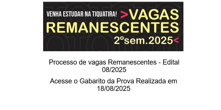 Acesse aqui o gabarito da prova referente ao processo de vagas remanescentes realizada em 18/008/2025.