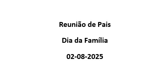 No dia 02-08-2025 teremos a Reunião de Pais nos seguintes horários: 1o s anos – Mtec das 8h00 às 9h30 e 2o e 3o s anos – Mtec das 10h00 às 11h30. O dia 02-08 é dia letivo referente ao dia 16-10 (quinta-feira).
