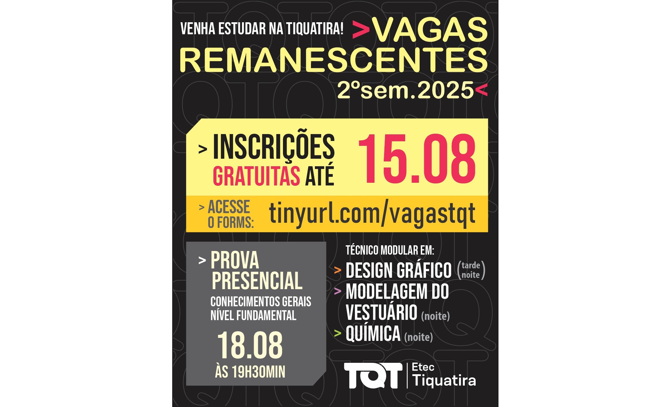 Estamos com vagas abertas para o curso técnico gratuito da Etec de Tiquatira!